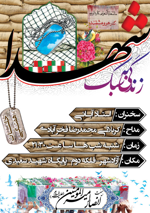 سلام اقا هاشم سرحدی میتونین یه طرح بزنین برای مناجات خوانی استقبال از ماه رمضان سحر دوشنبه 17 خرداد یاعت 3:30 بامداد مکان : مسجد امام رضا (ع) هیئت کربلا محفل بسیجیان و رهروان شهدا مسجد امام رضا میخواستم ببینم لوگو هیاتمون رو براتون بفرستم ایمیل تون رو ندارم ؟؟ فایل psd شو یا عکس؟